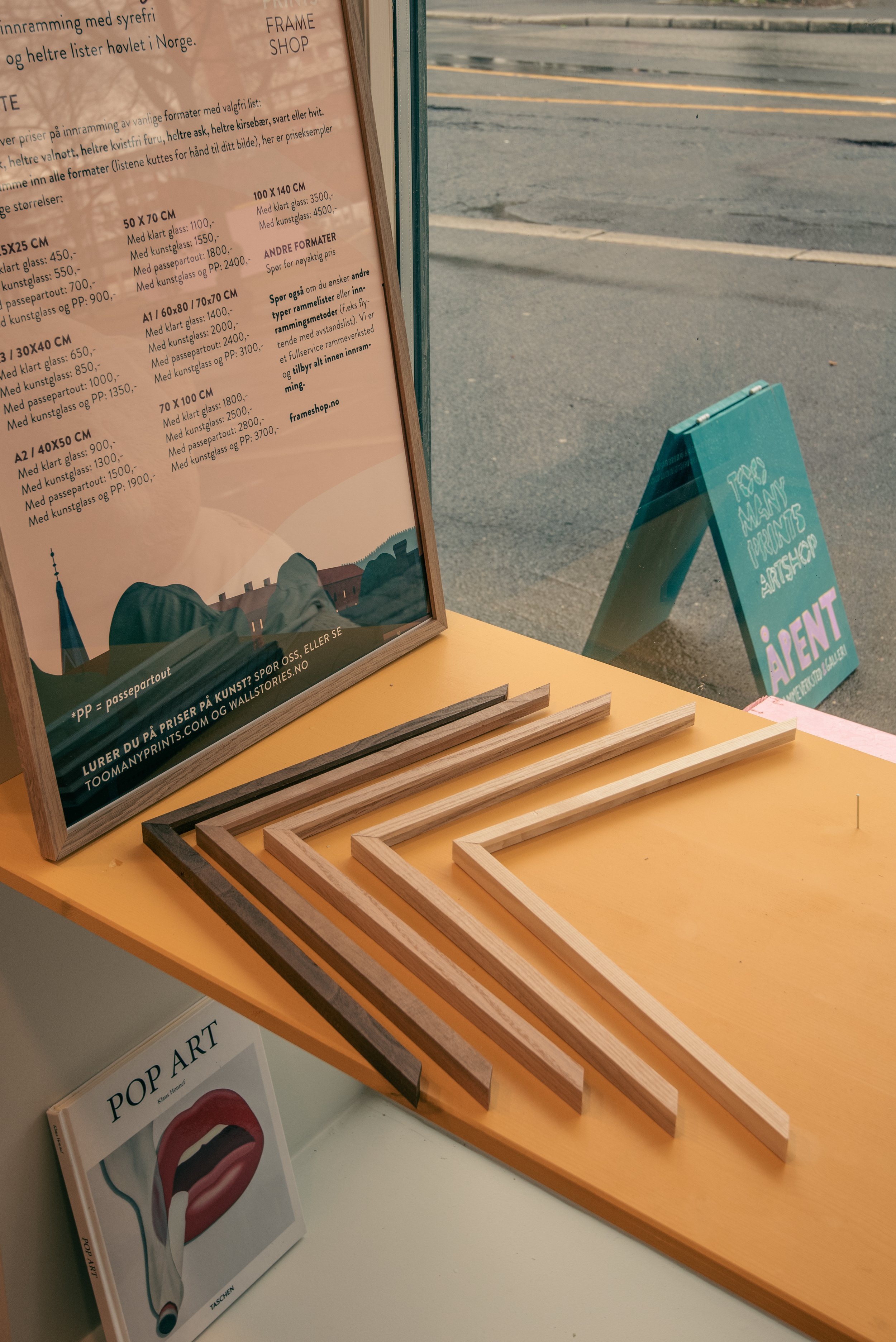 Vi tilbyr innramming med alle typer lister, inkludert vår egen heltrekolleksjon høvlet etter våre preferanser på et familiedrevet verksted i Østfold. Profilene er smale med rette vinkler, skarpe kanter og ubehandlet overflate, som gir et flott og naturlig spill i treverket. Listene kuttes til din kunst i rammeverkstedet vårt på Sagene